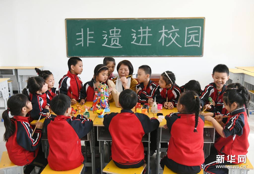 3月30日,白沟泥塑传承人胡秋英在校园内教孩子们给泥塑上色。近年来,河北白沟新城大力推动“非遗进校园”,将白沟泥塑项目引入到学生课程中,通过特色课堂、作品展览、培训体验和教育传习等活动,推动非遗项目与学校教育有机结合,让学生们在操作与体验中感受非遗技艺的魅力,促进中华传统文化的保护和传承。新华社记者 金良快 摄