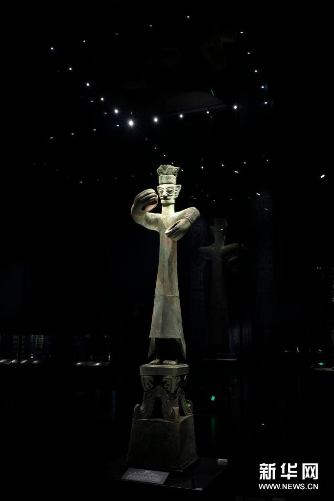 这是在位于四川省广汉市的三星堆博物馆拍摄的1986年出土于三星堆2号“祭祀坑”的青铜大立人(3月17日摄)。新华社记者 沈伯韩 摄