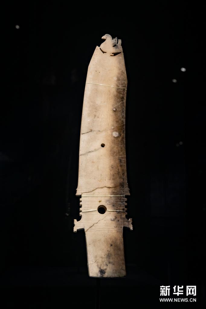 这是在位于四川省广汉市的三星堆博物馆拍摄的1986年出土于三星堆1号“祭祀坑”的玉璋(3月17日摄)。新华社记者 沈伯韩 摄