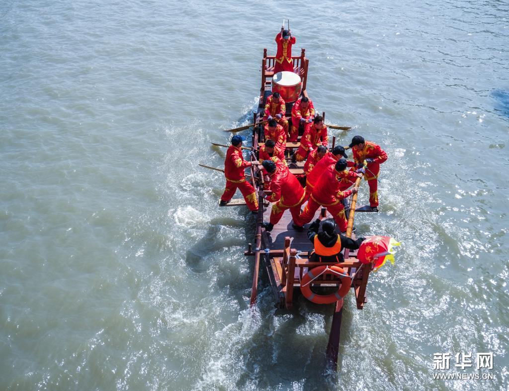 4月4日在“蚕花水会”现场拍摄的快船比赛。新华社记者 徐昱 摄