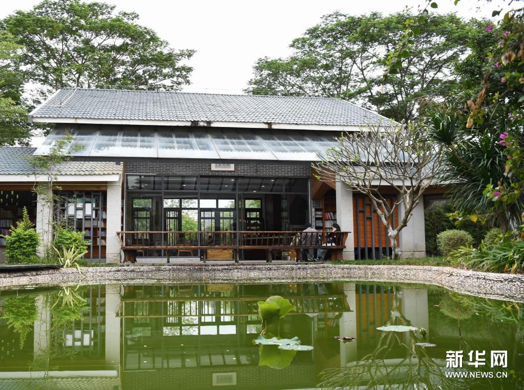 4月8日,读者在岛上书院内阅读。新华社记者 邓华 摄