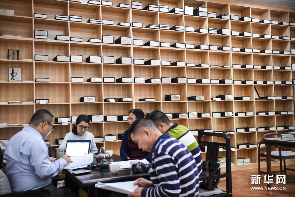 4月8日,在岛上书院,当地史志办工作人员在查阅藏书资料。新华社记者 邓华 摄