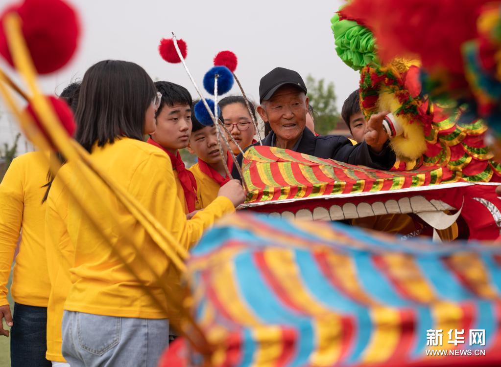 4月20日,河北省黄骅市齐家务小学开展“非遗麒麟舞”进校园活动,邀请国家级非物质文化遗产麒麟舞代表性传承人杨印海走进学校,为学生们讲解麒麟舞技艺。