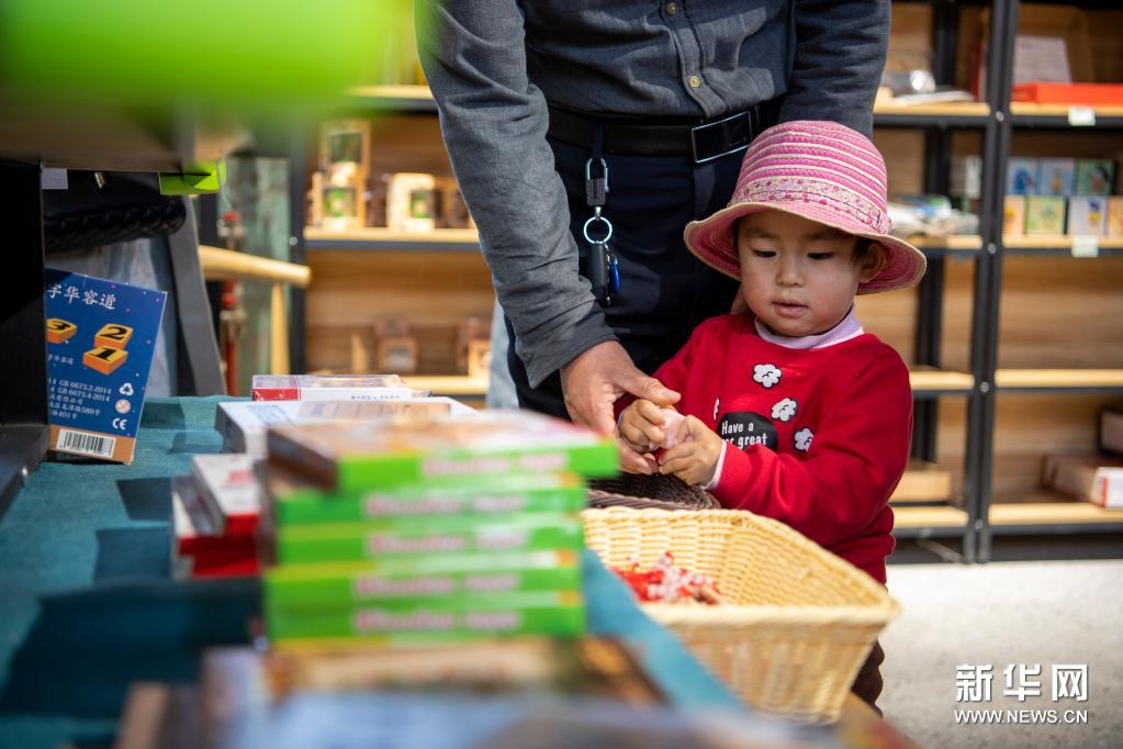 5月4日,小朋友在太原古县城的一家店铺内参观游玩。新华社记者 杨晨光 摄