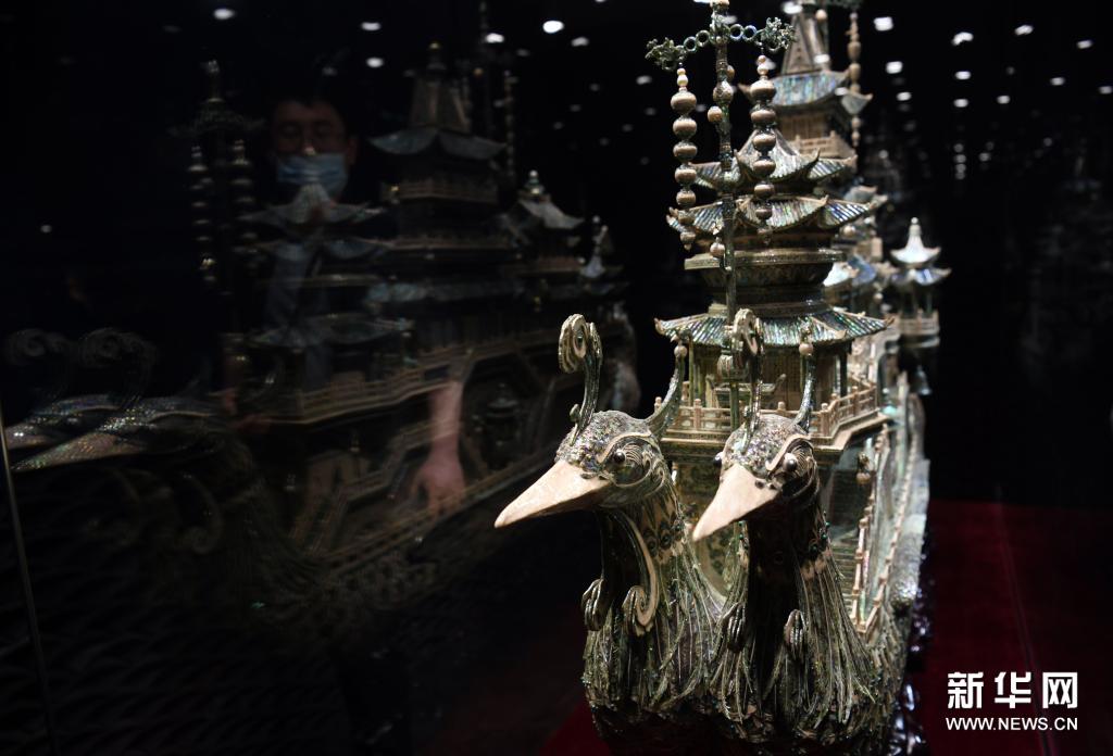 这是5月7日在北京恭王府博物馆拍摄的贝雕作品《凤船》。新华社记者 金良快 摄