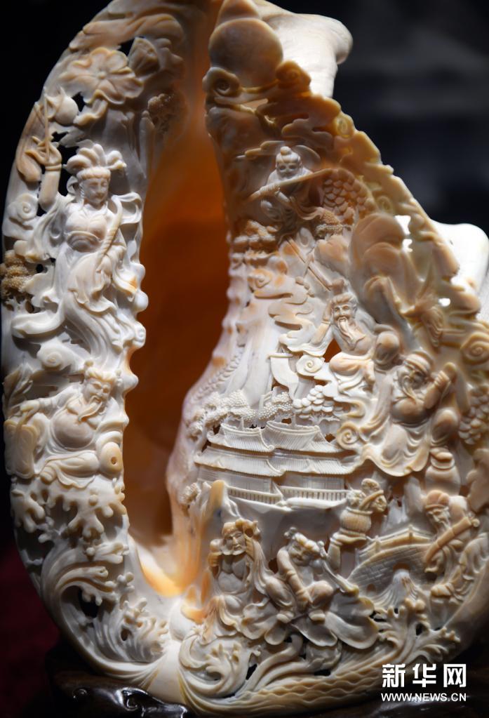 这是5月7日在北京恭王府博物馆拍摄的贝雕作品《八仙》。新华社记者 金良快 摄