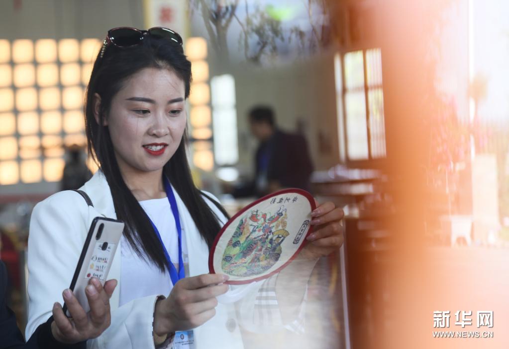 5月8日,游客在陕西省渭南市华州区少华山国际皮影博览园挑选皮影文创产品。新华社发(王智超 摄)