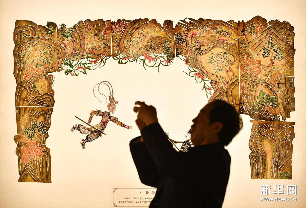 5月8日,游客在陕西省渭南市华州区少华山国际皮影博览园参观。新华社记者 张博文 摄