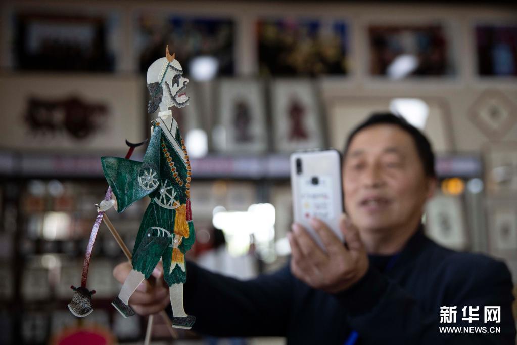 5月8日,游客在陕西省渭南市华州区少华山国际皮影博览园欣赏皮影作品。新华社记者 魏翔 摄