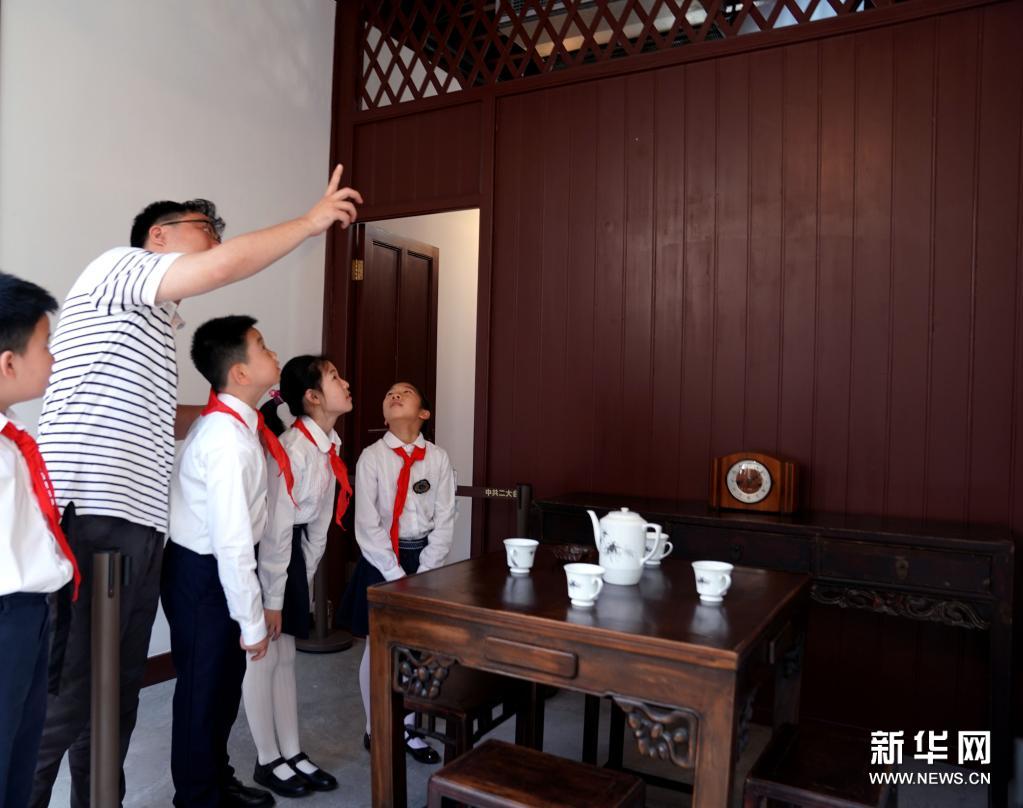 5月10日,小学生在老师带领下参观中共中央军委机关旧址。新华社记者 刘颖 摄