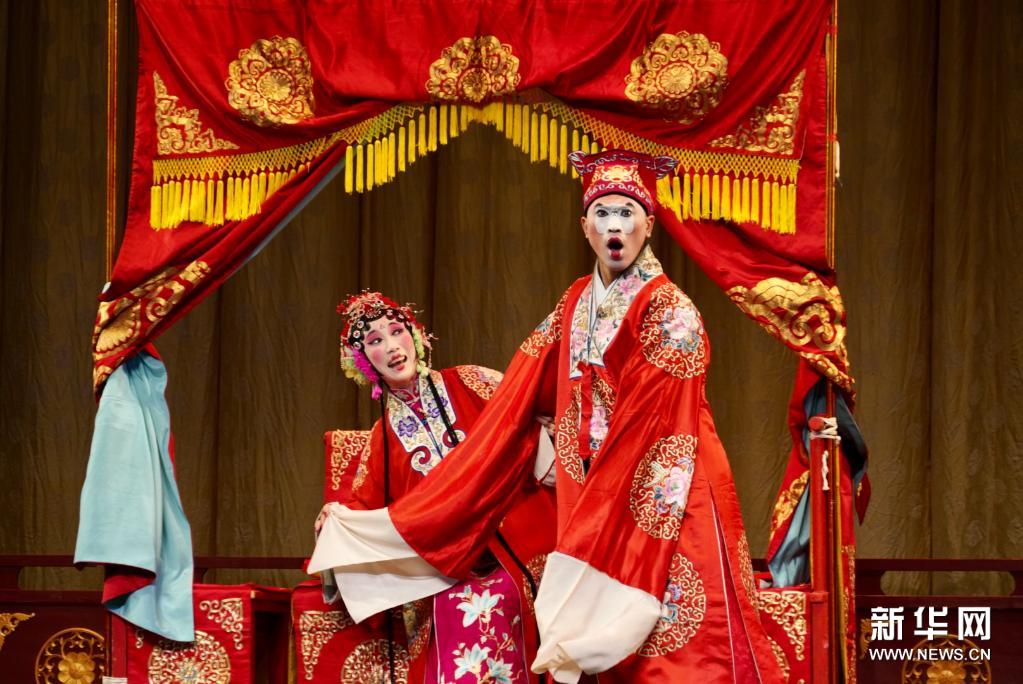 5月12日,北方昆曲剧院演员王瑾(左)和曹龙生在昆曲《风筝误》中表演。新华社记者 杜涓涓 摄