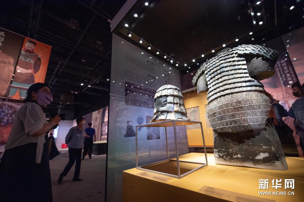 这是5月18日在“万年永宝——中国馆藏文物保护成果展”上拍摄的陕西西安秦始皇陵出土的石甲胄。新华社记者 陈钟昊 摄