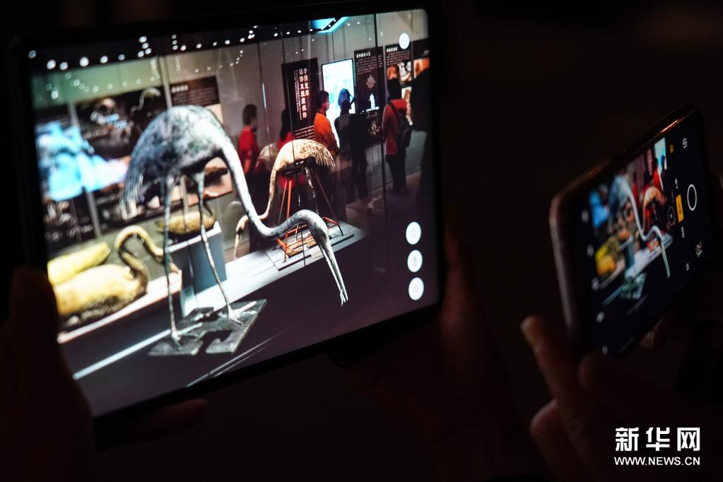 5月18日,观众在“万年永宝——中国馆藏文物保护成果展”上体验AR观看文物修复过程。新华社记者 陈钟昊 摄