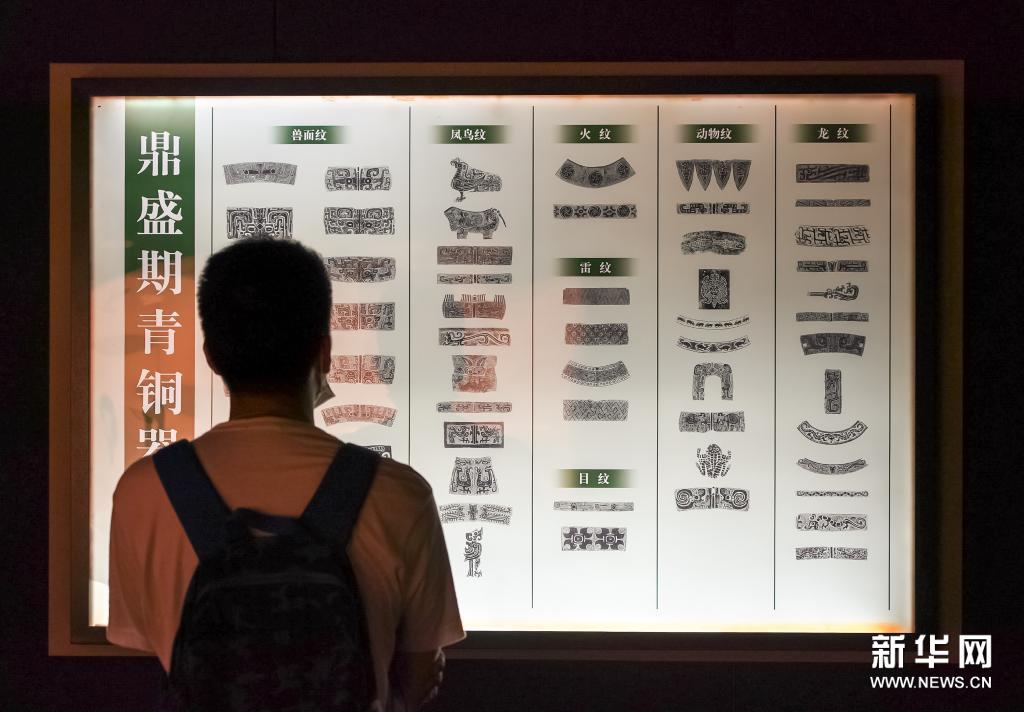 5月18日,观众在上海博物馆中国古代青铜馆观看“鼎盛期青铜器纹饰”。新华社记者 王翔 摄