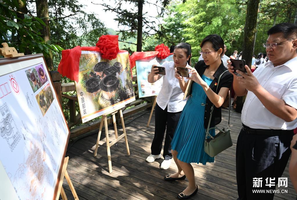5月19日,在福建漳州市南靖县田螺坑土楼群观景台,参观者在《福建土楼》特种邮票发行活动现场拍照。当日,中国邮政发行《福建土楼》特种邮票1套4枚,全套邮票面值为4.80元。该套邮票以土楼的四季为主题,表现了振成楼、二宜楼、田螺坑土楼群、承启楼。新华社记者 林善传 摄