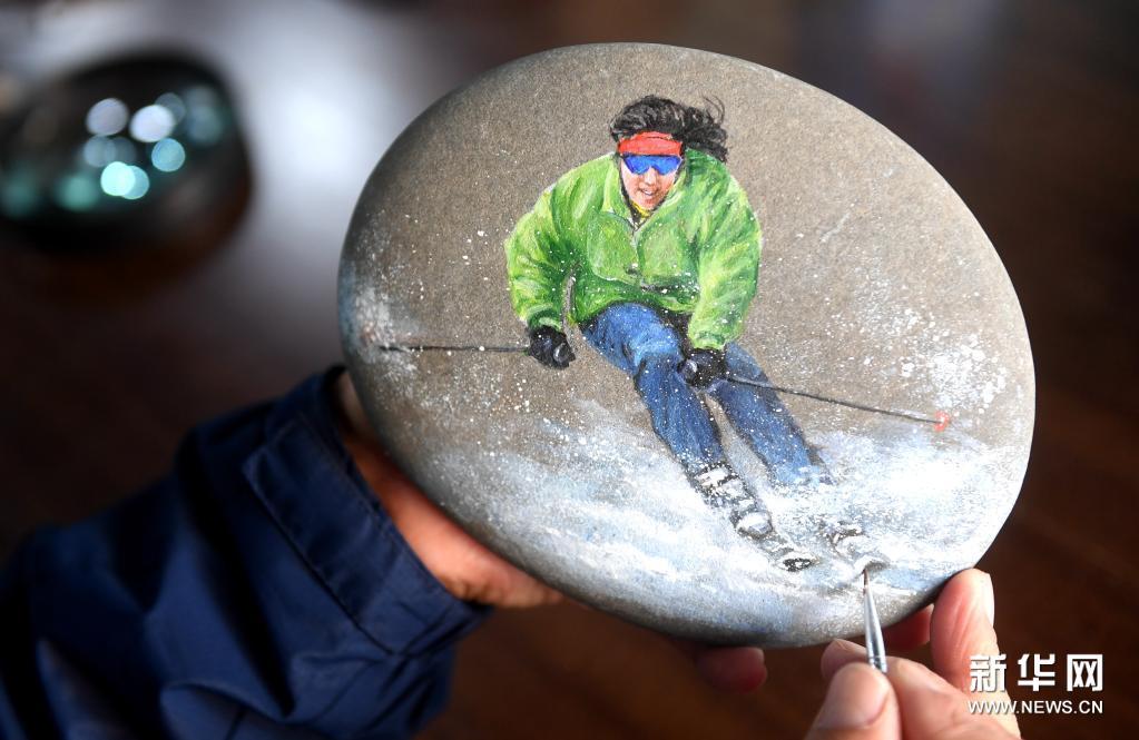 5月20日,陈智旺在创作石雕画作品。河北张家口市桥东区民间艺人陈智旺利用当地石材,陆续创作了一批以激情冬奥为主题的石雕画作品,展现冰雪运动的魅力。新华社记者 王晓 摄