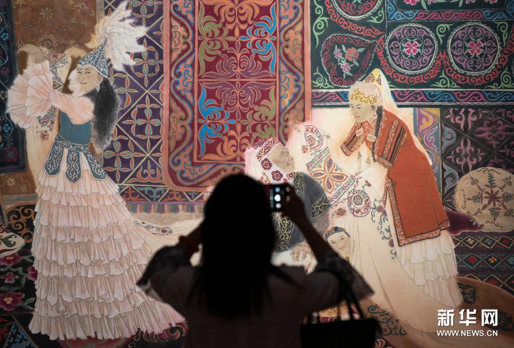 5月21日,参观者在新疆美术馆展厅欣赏拍摄画家韩思菊的中国画作品《叠翠凝霞芳指流》。当日,新疆美术馆正式对外开放。开馆当天,“美在新疆——中国美术馆馆藏精品展”“沃土情深——新疆现实题材美术作品展”等6个精品展览集中开放,吸引美术爱好者前来参观。新华社记者 王菲 摄