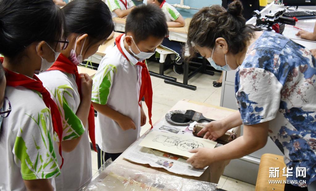 5月31日,北京市东城区东四九条小学举办庆祝“六一”国际儿童节传统文化进课堂活动,多位非遗传承人为学生讲解非遗故事,让学生们感受中国传统文化的魅力。新华社记者 李欣 摄