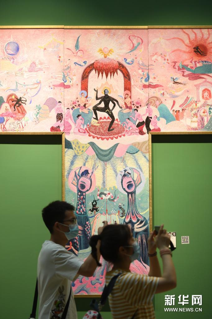6月2日,参观者在浙江美术馆观看壁画作品。新华社记者翁忻旸摄