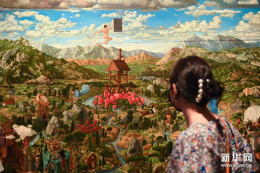 6月2日,参观者在浙江美术馆观看油画作品。新华社记者翁忻旸摄