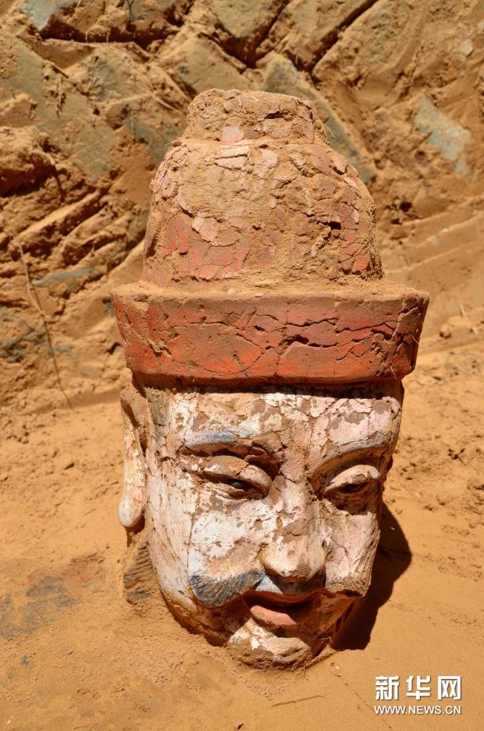 这是在陕西榆林清平堡遗址出土的泥塑造像(2020年5月18日摄)。新华社发