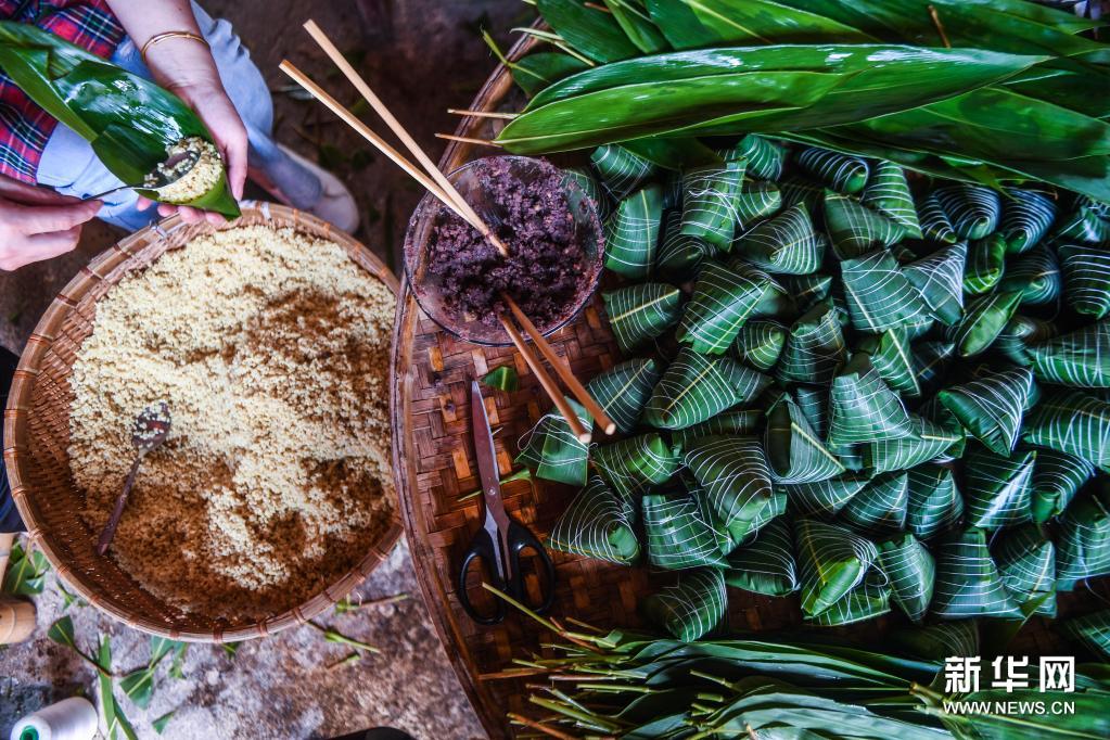 6月8日,湖源乡窈口村村民在包传统灰汤粽。新华社记者 徐昱 摄