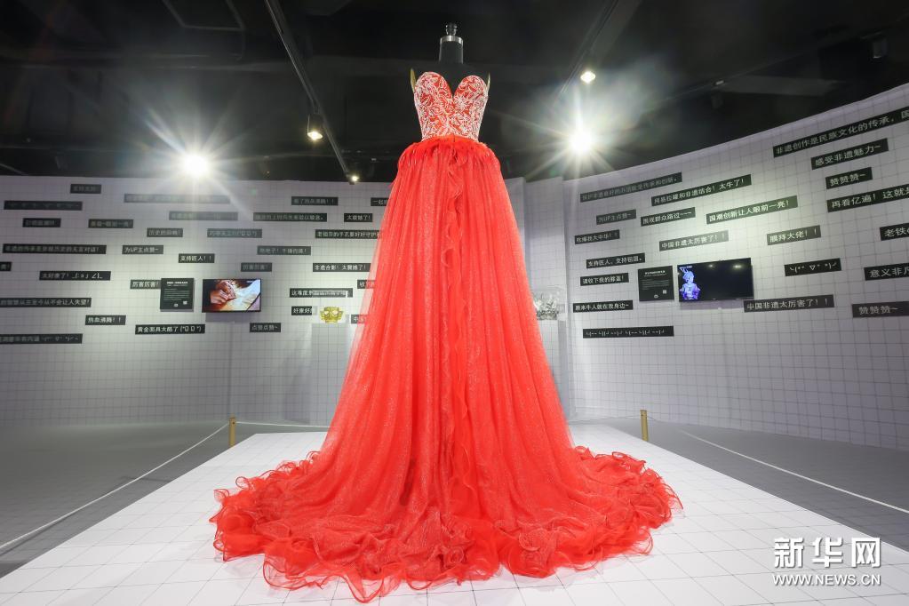 6月12日在展厅拍摄的羌绣礼服。新华社记者 王翔 摄