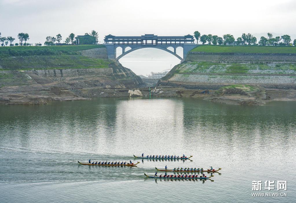 6月14日,参与竞渡的龙舟在比赛中。新华社发(向红梅 摄)