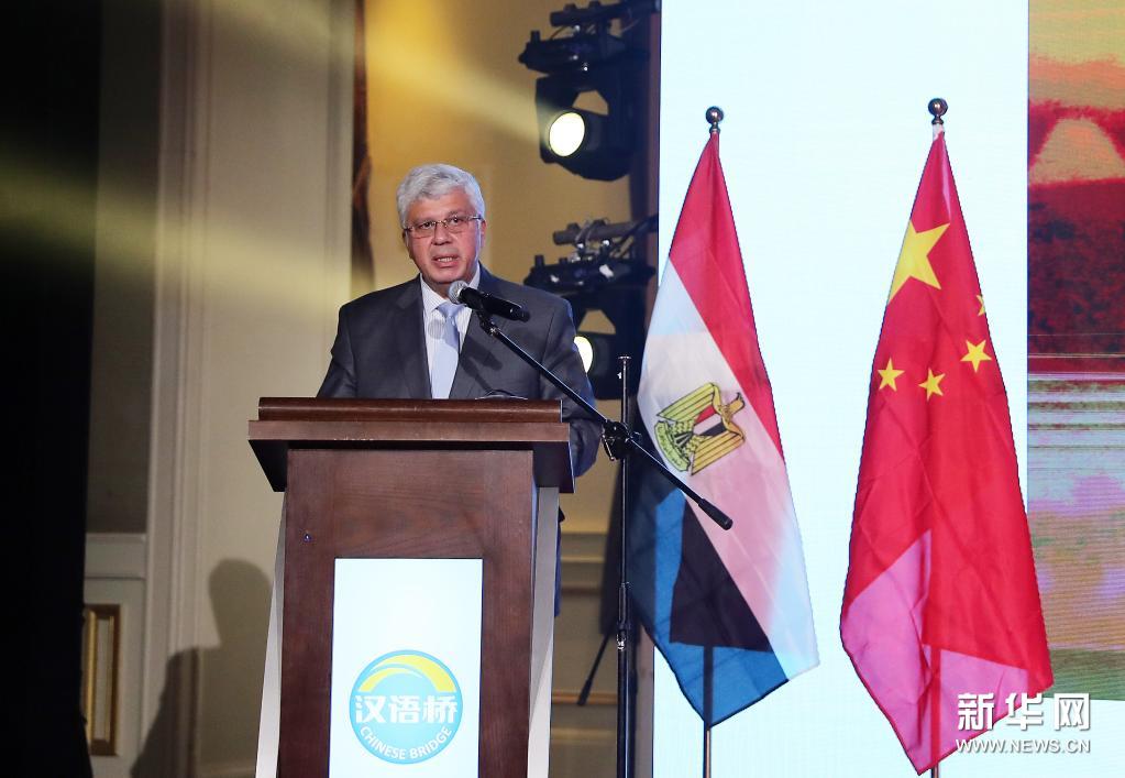 6月15日,埃及高等教育部副部长穆罕默德·艾曼·阿舒尔在“汉语桥”俱乐部开罗站揭牌仪式现场致辞。新华社记者 王东震 摄