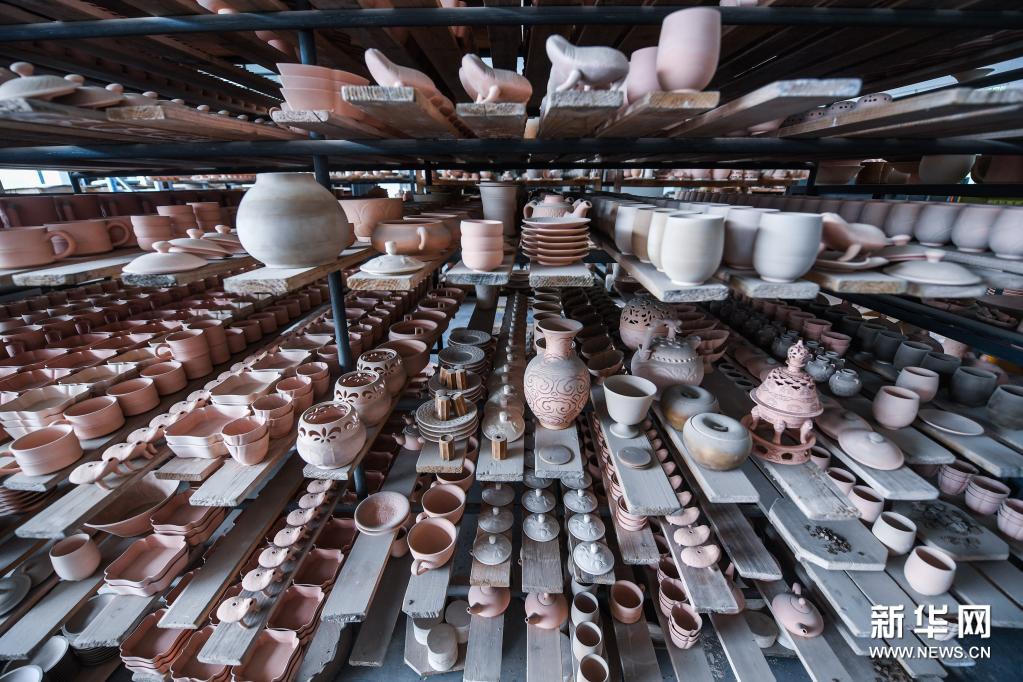 6月17日,在位于慈溪市匡堰镇的慈溪市越窑青瓷有限公司车间内,一批越窑青瓷等待烧制。新华社记者 徐昱 摄