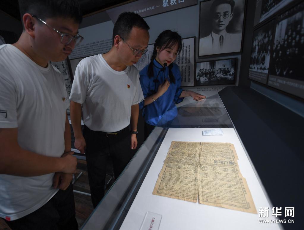 6月17日,党员在讲解员带领下参观“红色报刊史料研学中心”展示的1919年出版的《湘江评论》。新华社记者 徐昱 摄