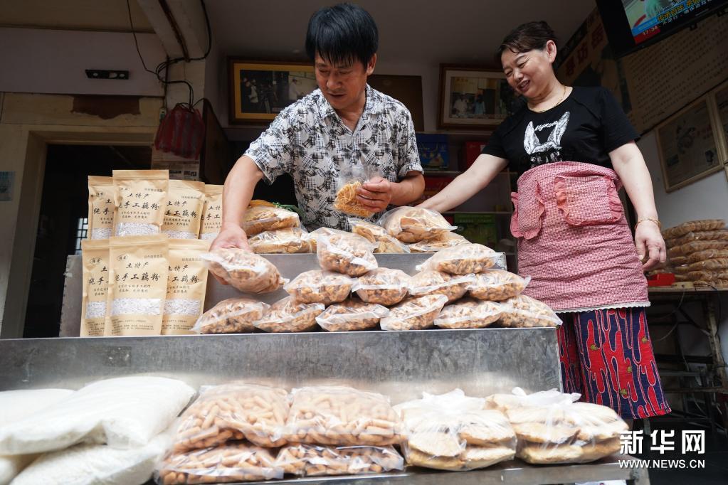 6月25日,河下古镇一家店主在摆放当地特色小吃。新华社记者 季春鹏 摄