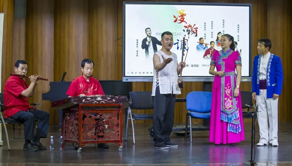 中国音乐学院“新山歌社”日前举办了漫瀚调音乐专场活动,邀请来自内蒙古鄂尔多斯准格尔旗的岳文祥、周俊丽、杨文英、裴成厚、田光成五位老师,带来蒙古族、汉族文化交融下形成的代表性民歌歌种——漫瀚调。