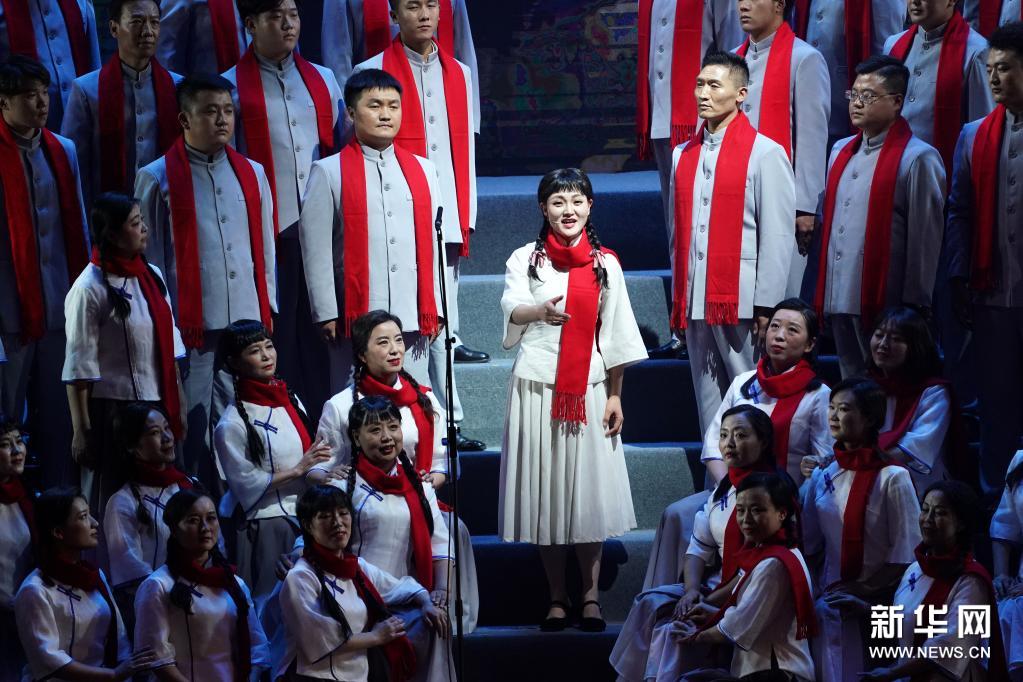 6月30日,在山西大剧院,演员在演唱《一道道水 一道道山》。新华社记者 詹彦 摄