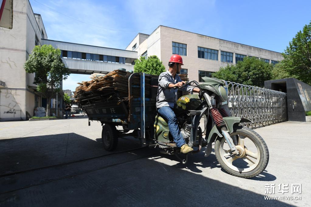 7月6日,位光明在斗门街道一家企业收废品。新华社记者 翁忻旸 摄