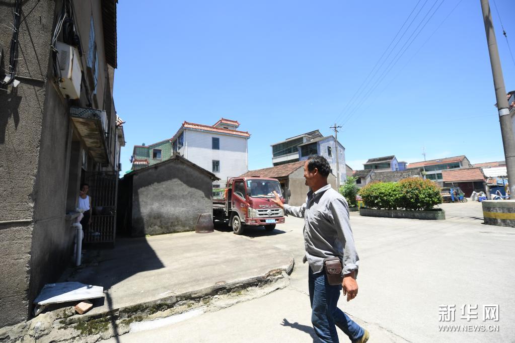 7月6日,位光明在斗门街道东堰村和邻居打招呼。新华社记者 翁忻旸 摄