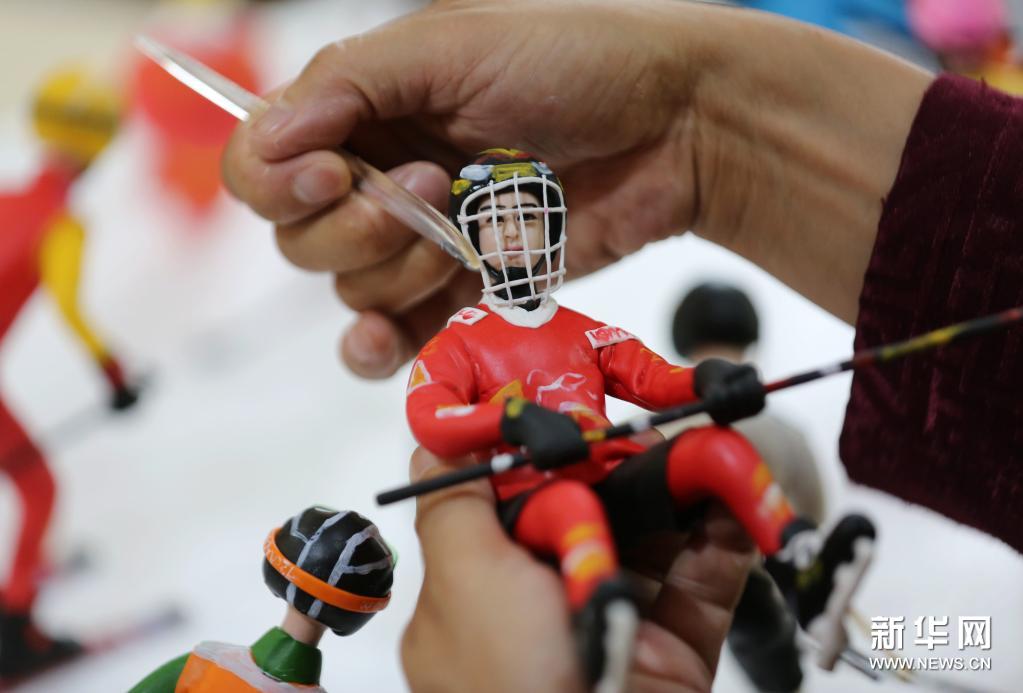 7月6日,山东省临沂市的民间艺人左安胜对面塑人物进行修整。新华社发(王彦冰 摄)