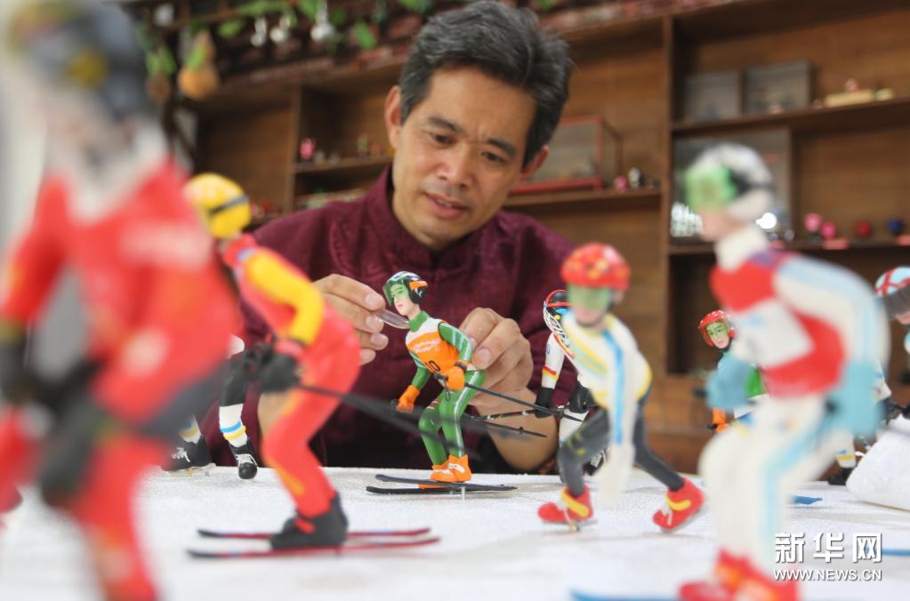 山东沂南:冰雪运动面塑作品
