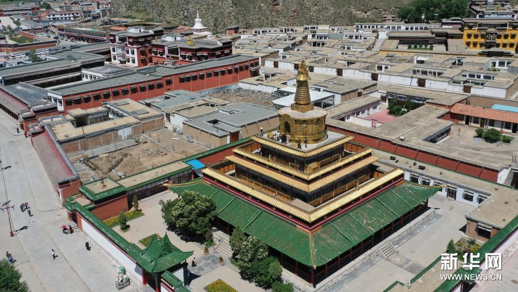 这是7月12日拍摄的拉卜楞寺贡唐宝塔(无人机照片)。新华社记者 陈斌 摄
