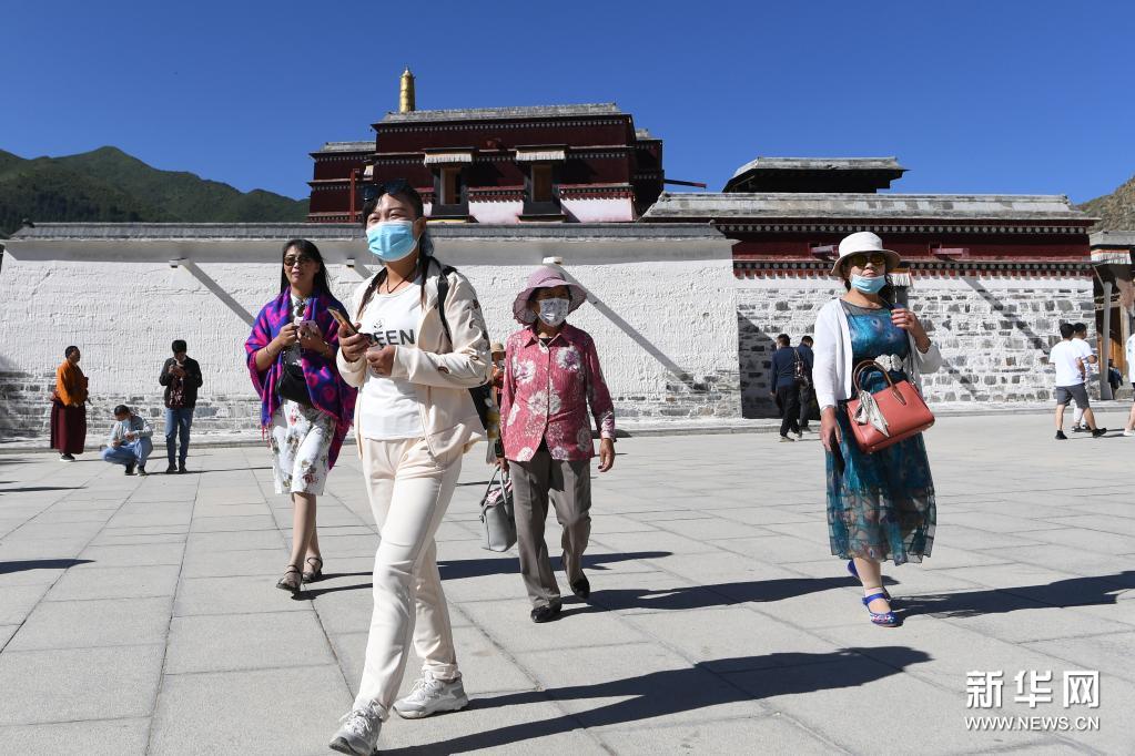 7月12日,游客在拉卜楞寺参观。新华社记者 陈斌 摄