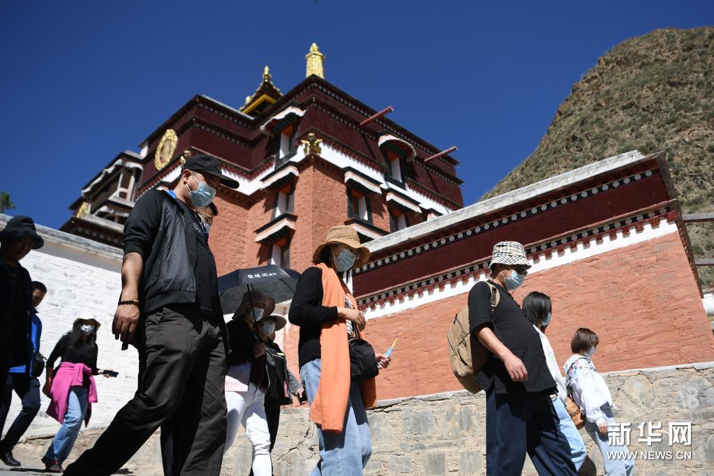 7月12日,游客在拉卜楞寺参观。新华社记者 陈斌 摄