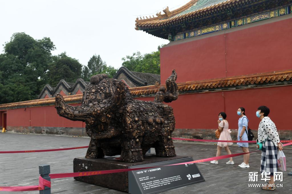 这是故宫内展出的《福牛辞“旧”》废弃物再生雕塑(7月13日摄)。新华社记者 金良快 摄