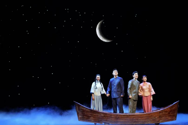 而在《家》的舞蹈创作中,则大量吸收了中国古典舞、民族民间舞和中国戏曲等创作元素,舞段重在展现人物性格和人物情绪,例如觉慧和鸣凤二人在确定爱意之后跳起的动人的双人舞段,以舞寄情,通过肢体语言让全剧更加充实有看点。