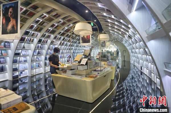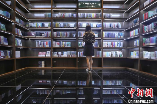 一位市民在贵阳市观山湖区钟书阁书店内选购书籍。 瞿宏伦 摄