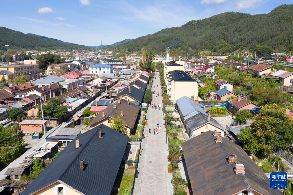 黑龙江省海林市横道河子镇一角(9月15日摄,无人机照片)。黑龙江省海林市横道河子镇始建于1897年,因中东铁路的修建而兴建,已有百余年历史。 全镇现有俄式建筑百余栋,中东铁路横道河子机车库、铁路大白楼、俄式木屋等被列入全国重点文物保护单位,2018年荣获联合国教科文组织亚太地区文化遗产保护奖。新华社记者 谢剑飞 摄
