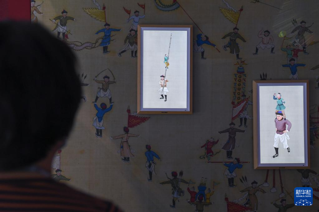 9月23日,观众在第十七届文博会故宫博物院展台欣赏数字化《冰嬉图》局部。新华社记者 毛思倩 摄