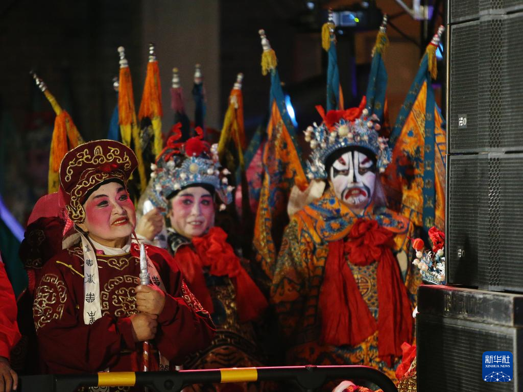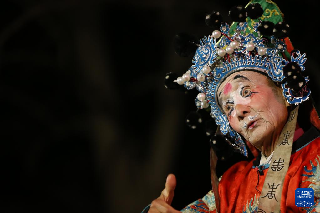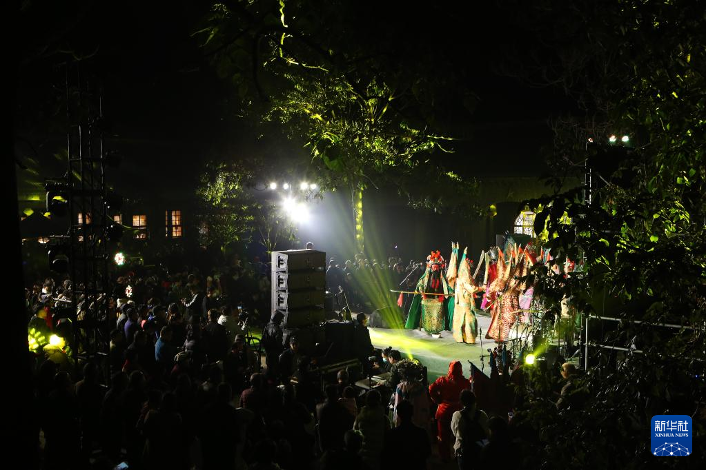 在大南坡村艺术中心广场,大南坡村怀梆剧团在舞台上表演(10月21日摄)。新华社记者 许雅楠 摄