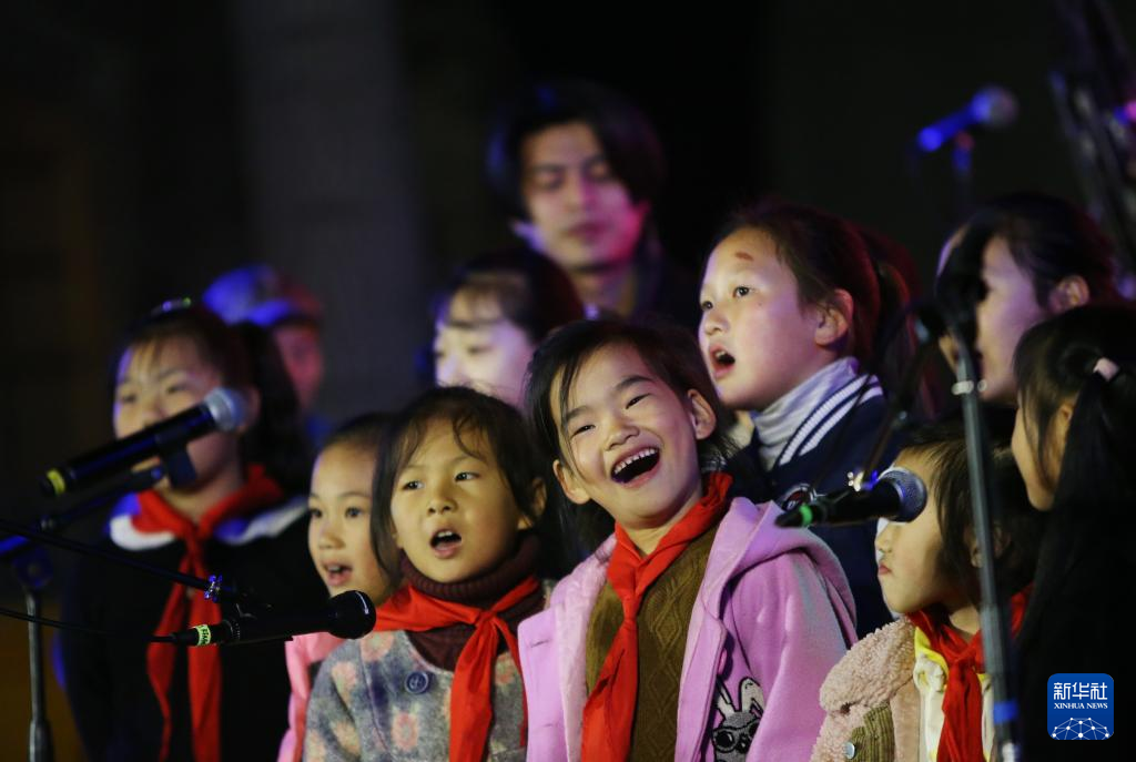 在大南坡村艺术中心广场,村里的小朋友在舞台上表演合唱(10月21日摄)。新华社记者 许雅楠 摄