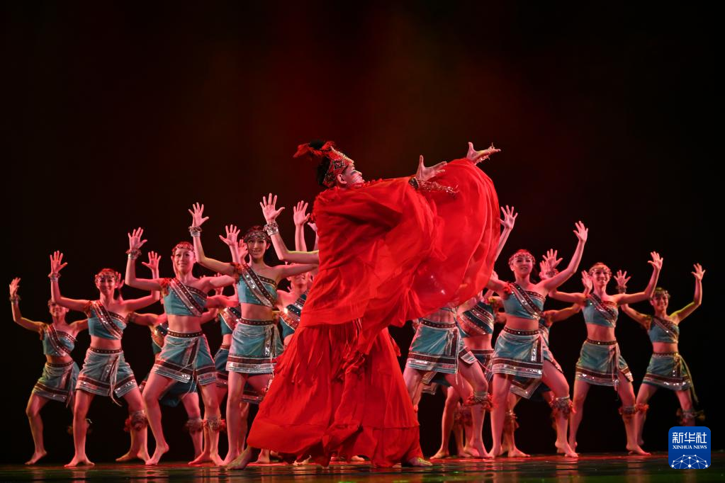 11月12日,福建艺术职业学院的演员在福建舞蹈“百合花奖”决赛中表演《潮》。新华社发(周义 摄)