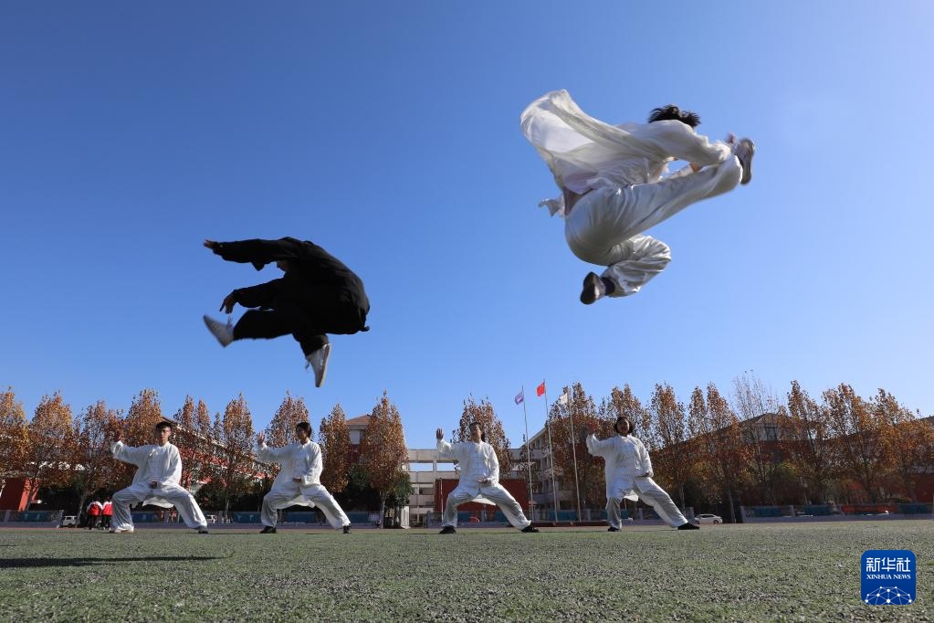 11月23日,焦作市温县一中太极拳社团的学生在习练太极拳。新华社发(徐宏星 摄)
